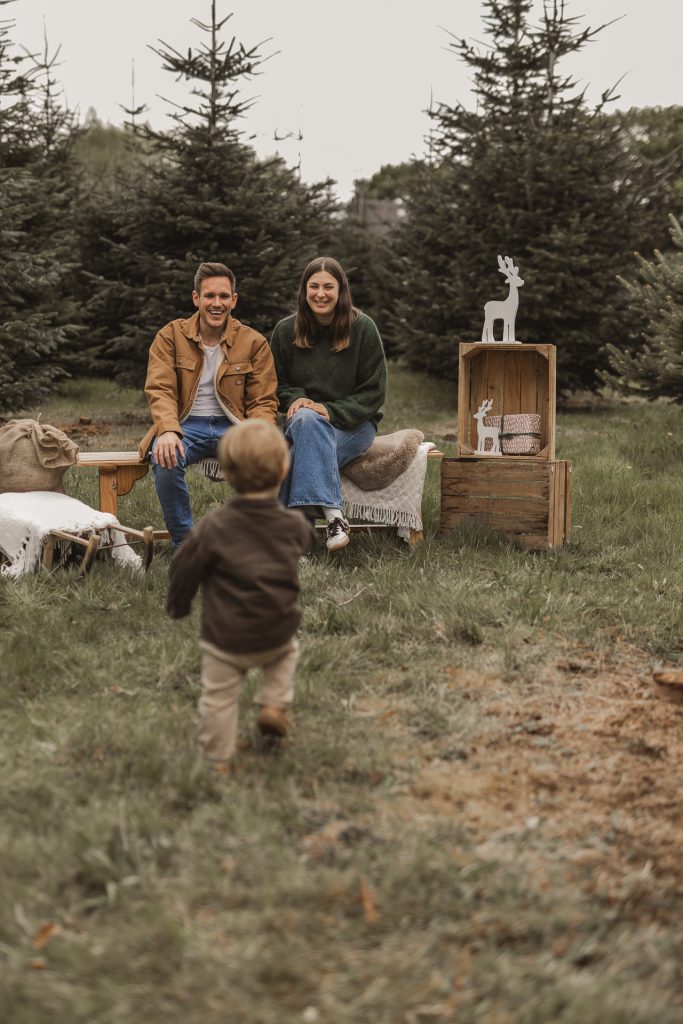 Ein zauberhaftes 20-Minuten-Fotoshooting mitten im Grünen – mit liebevoll dekoriertem Set, kuscheligen Accessoires & echter Weihnachtsmagie.